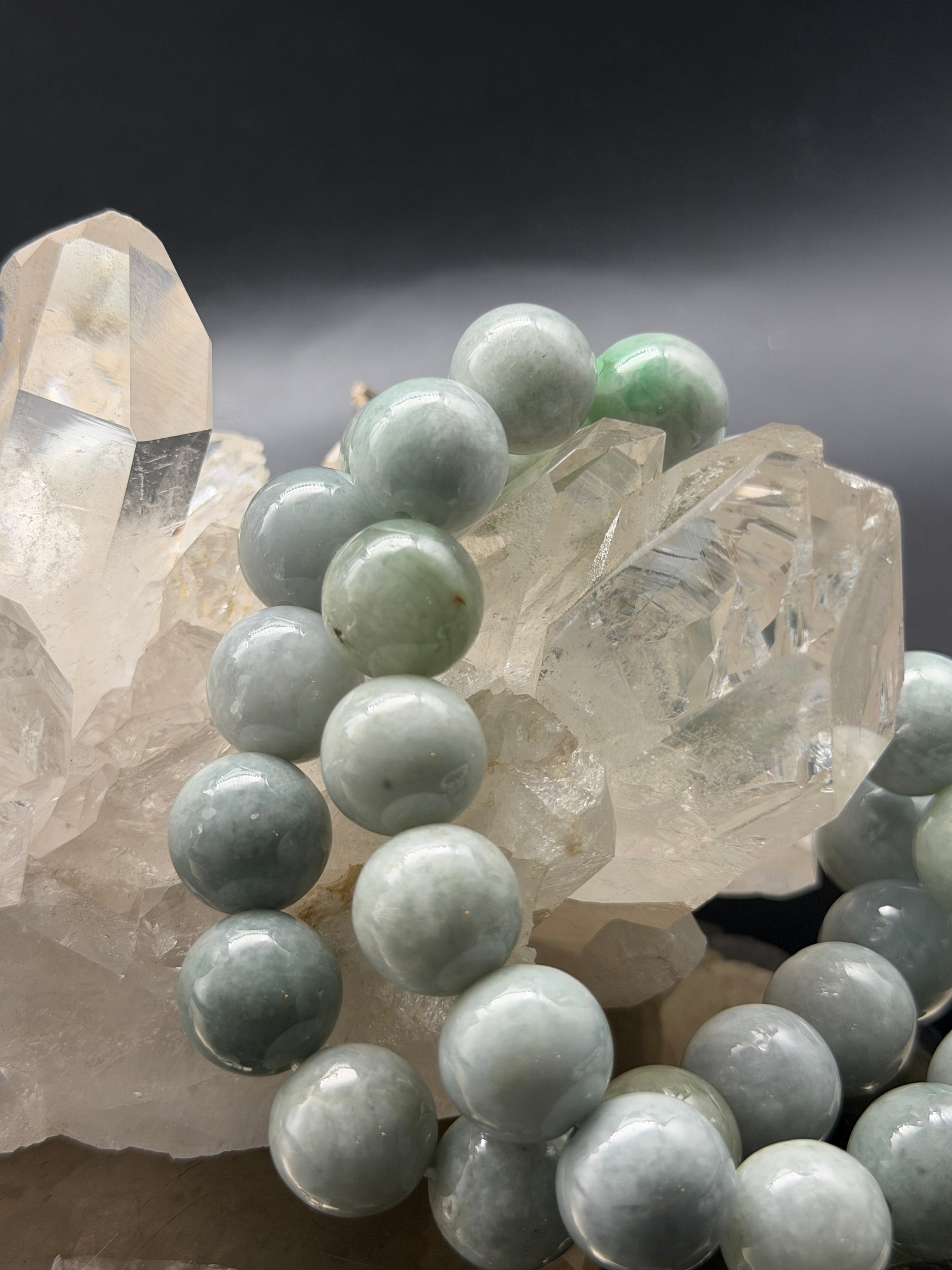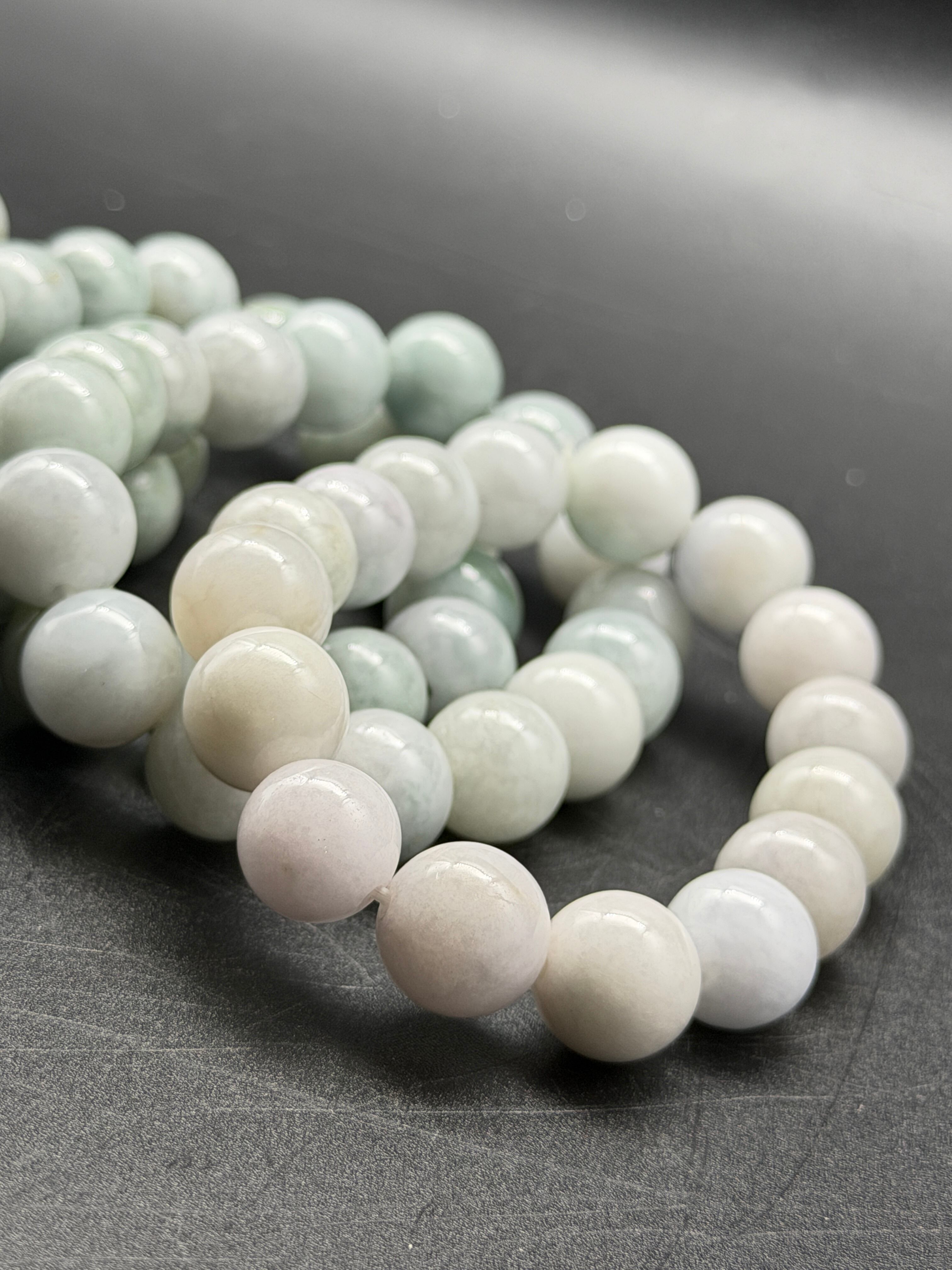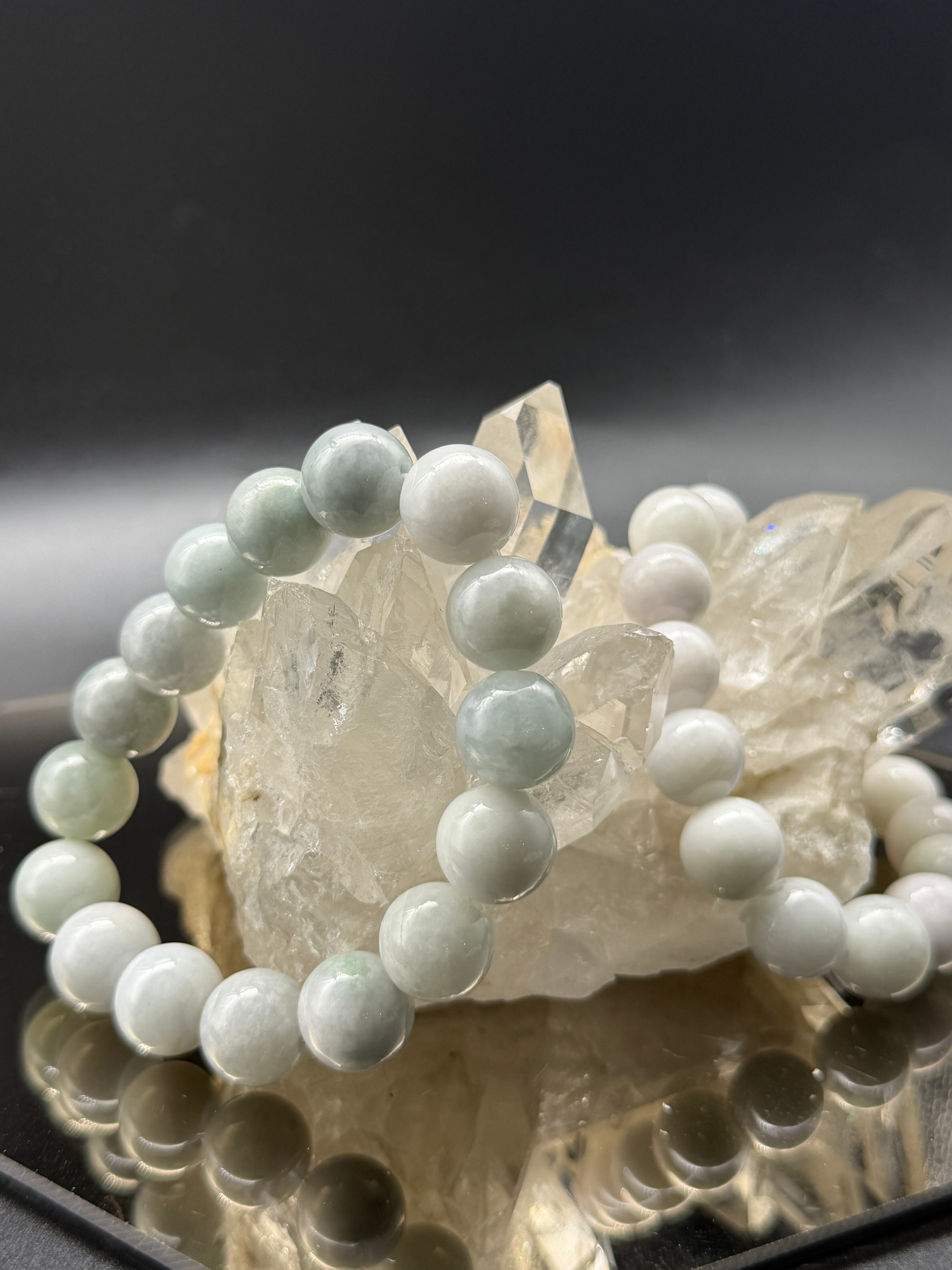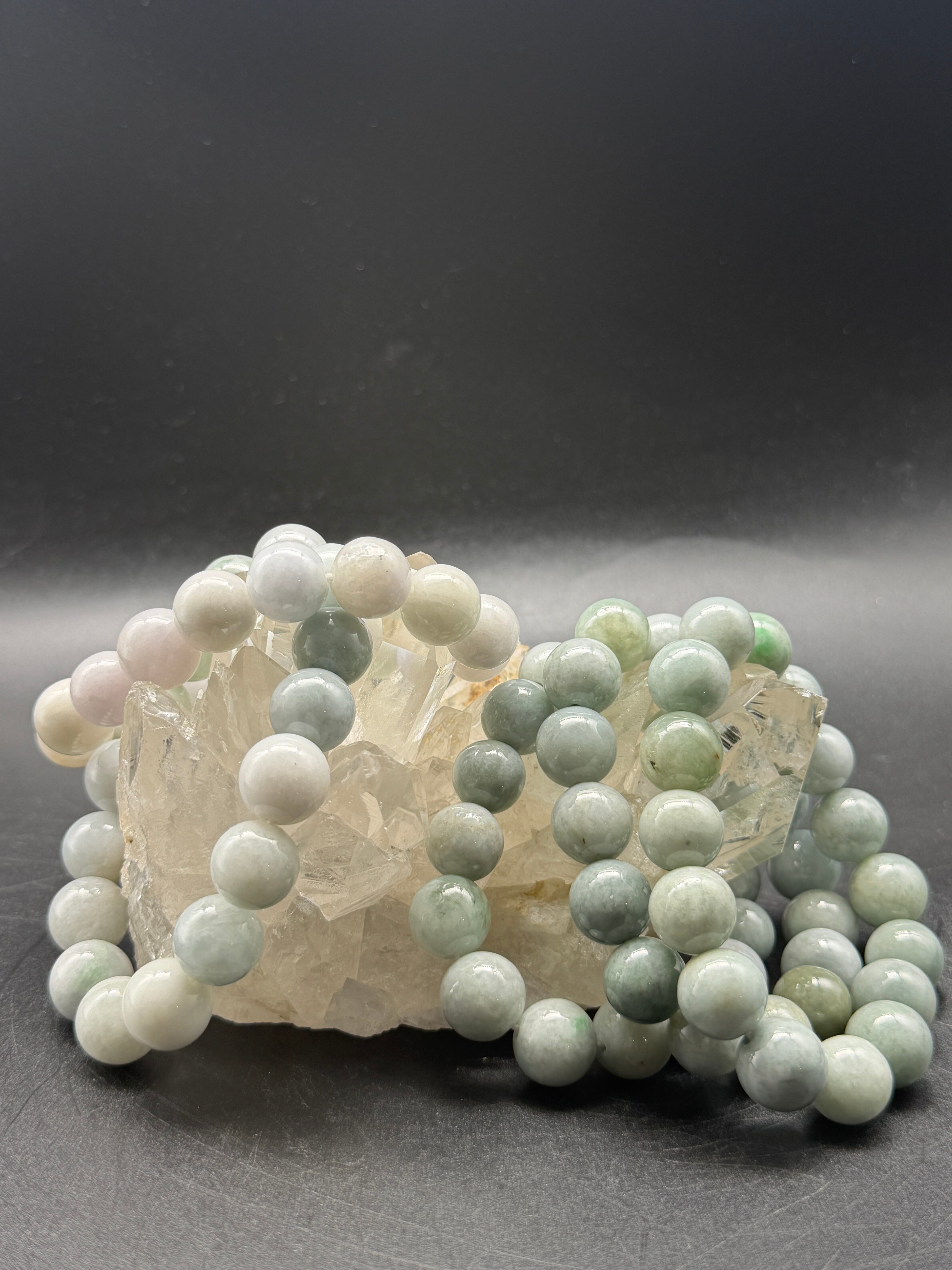 ナチュラルな翡翠の濃淡が、個性的で魅力的な光を放ちながら、人生の財と繁栄、健康をもたらすブレスレットです!