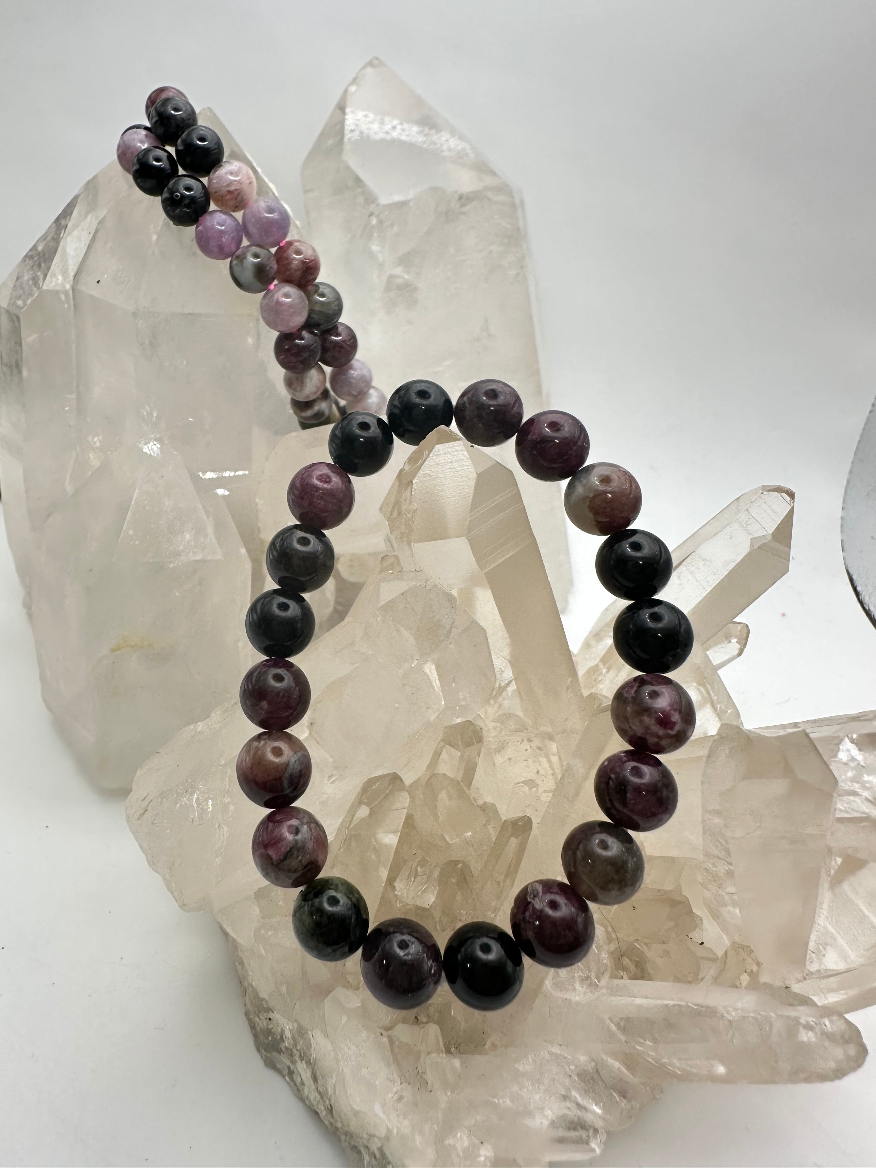 ナチュラルなミックスカラーのトルマリン8㎜粒のブレスレットです。