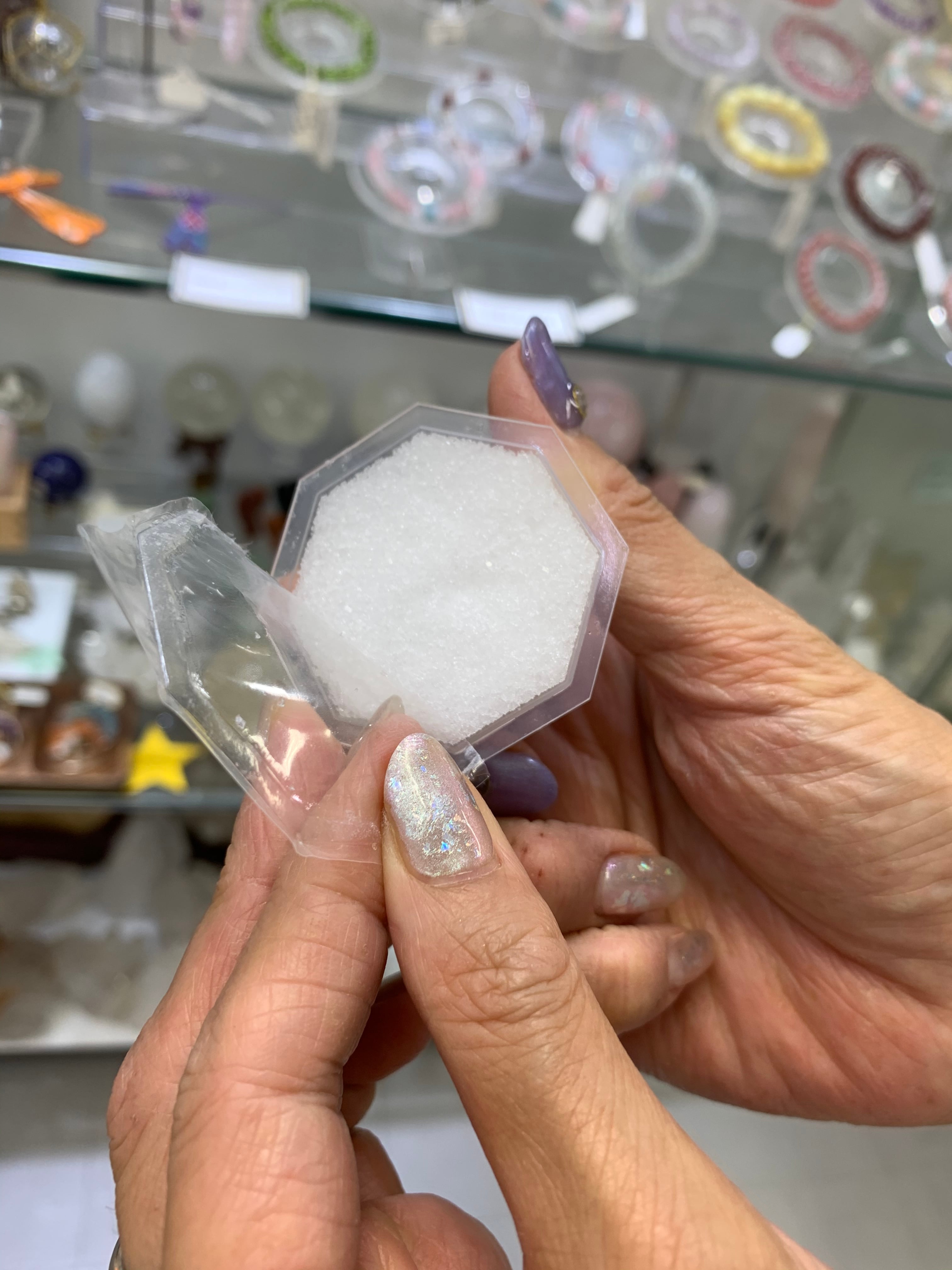 フィルムシールを剥がしてお皿に盛るだけで誰でも簡単にしっかりとした盛り塩が出来ます。