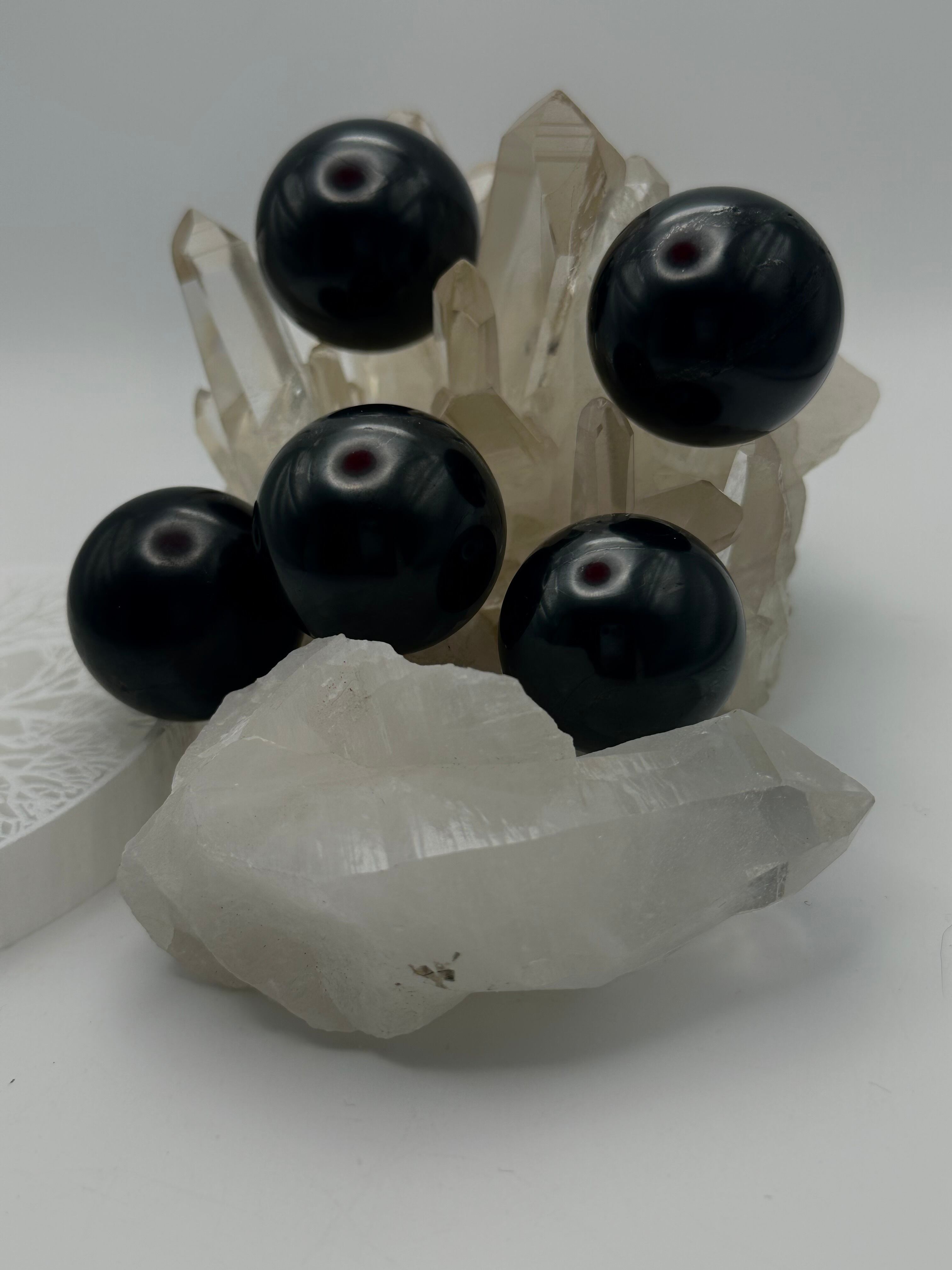 真っ黒な漆黒の闇のようでありながら、手にするとひとたび、身体のエネルギーの渦を捉え、全身に浄めのエネルギーが染み渡るような、この時代おすすめの「シュンガイト」の丸玉です!