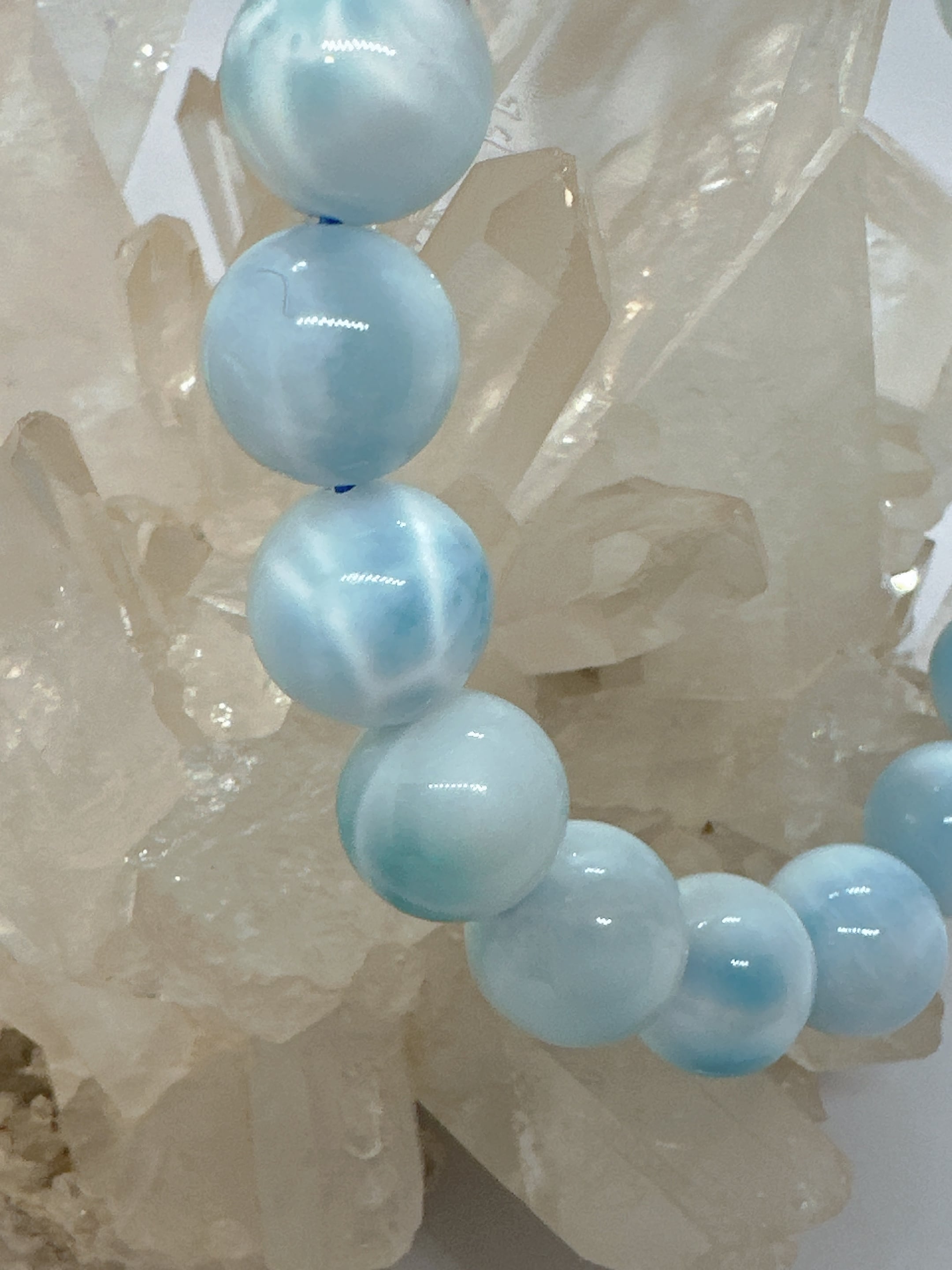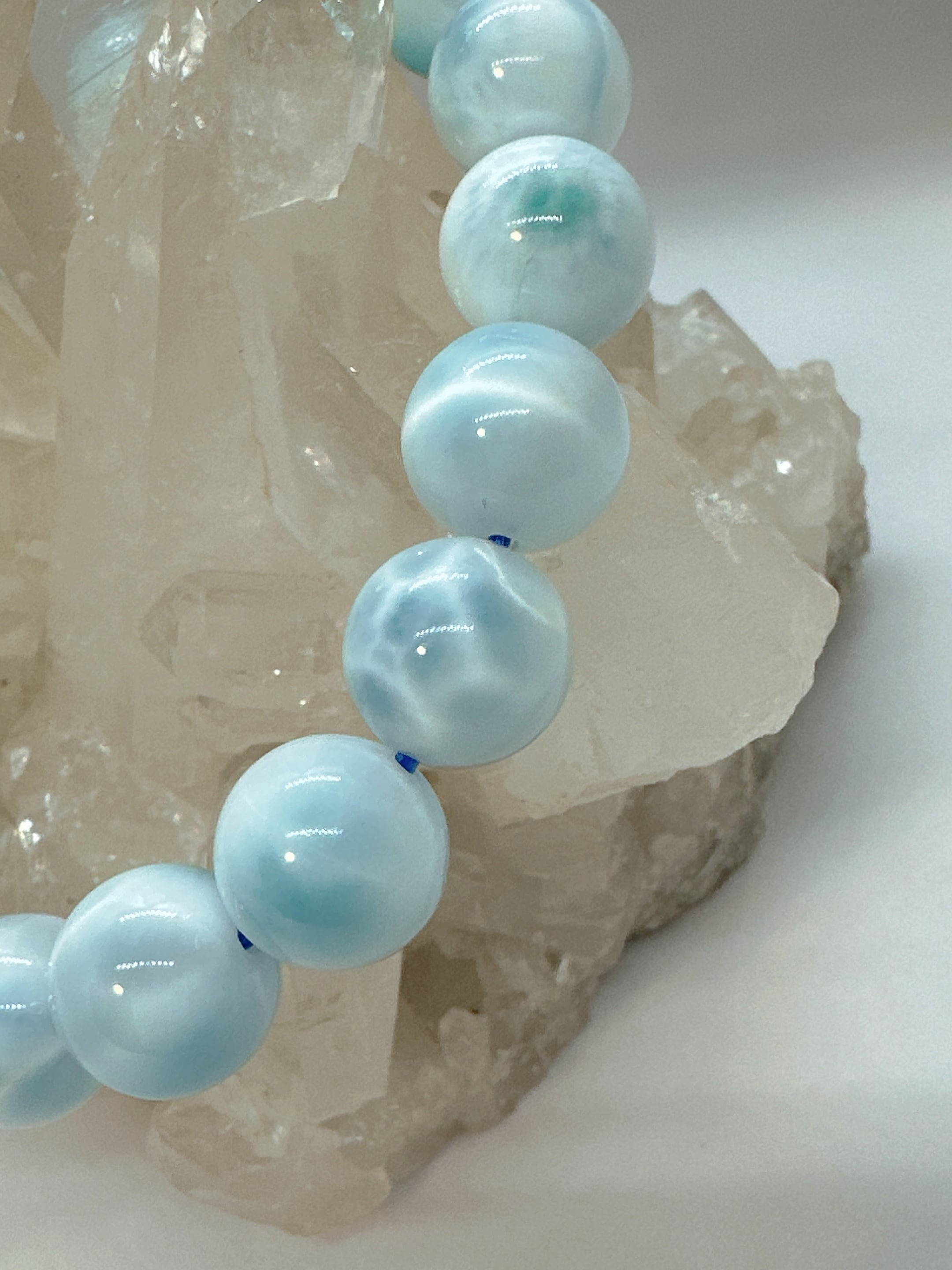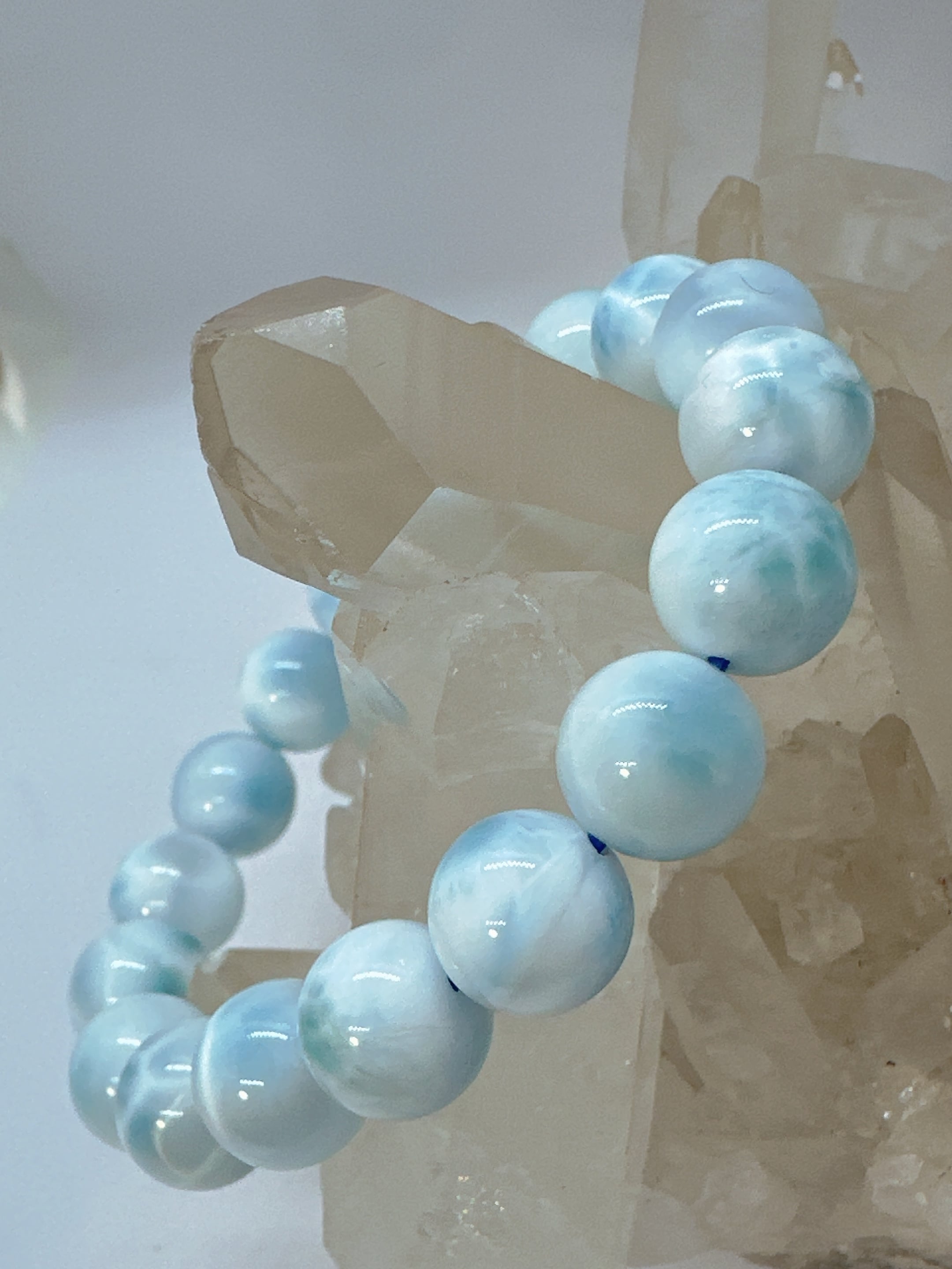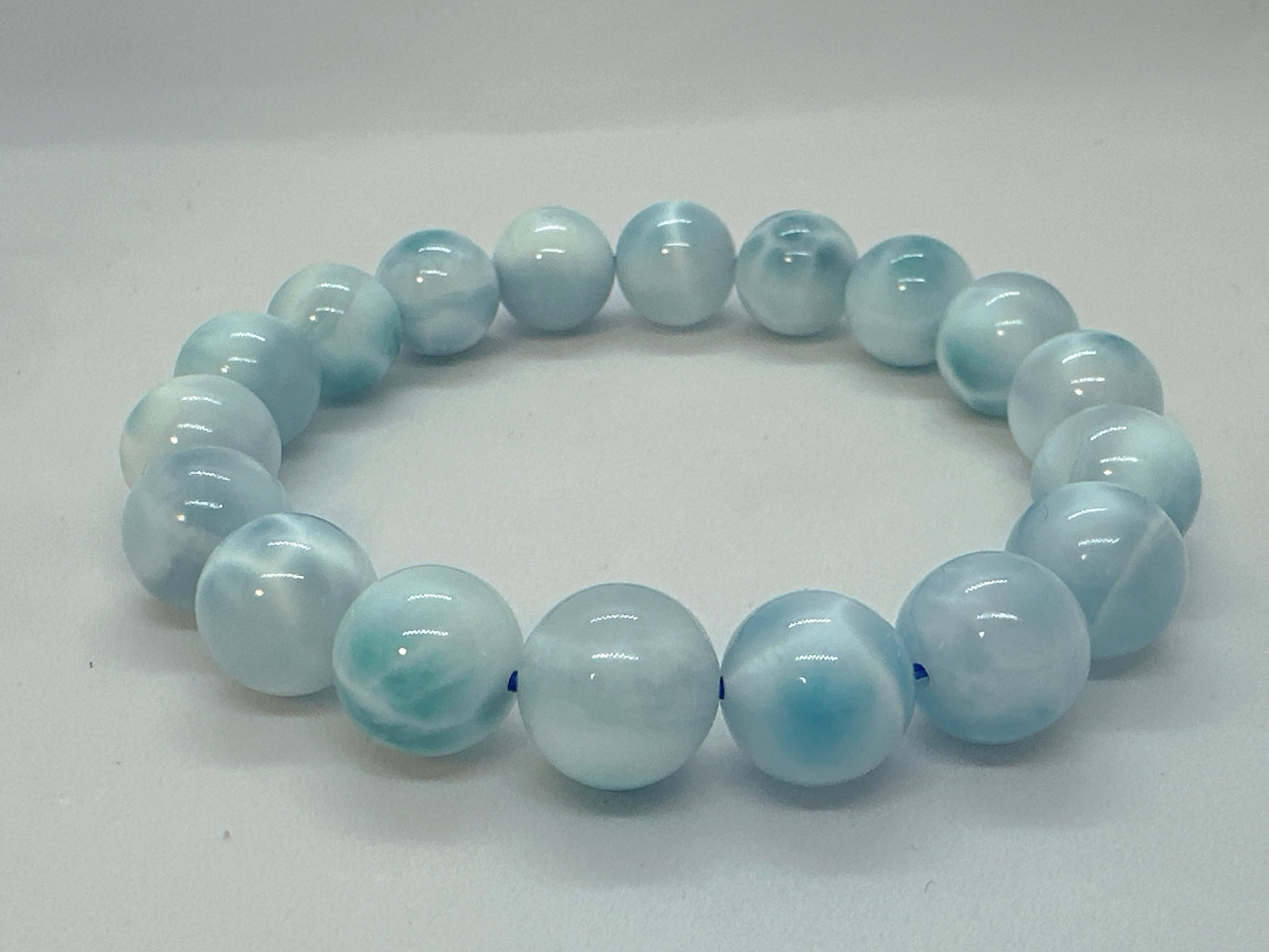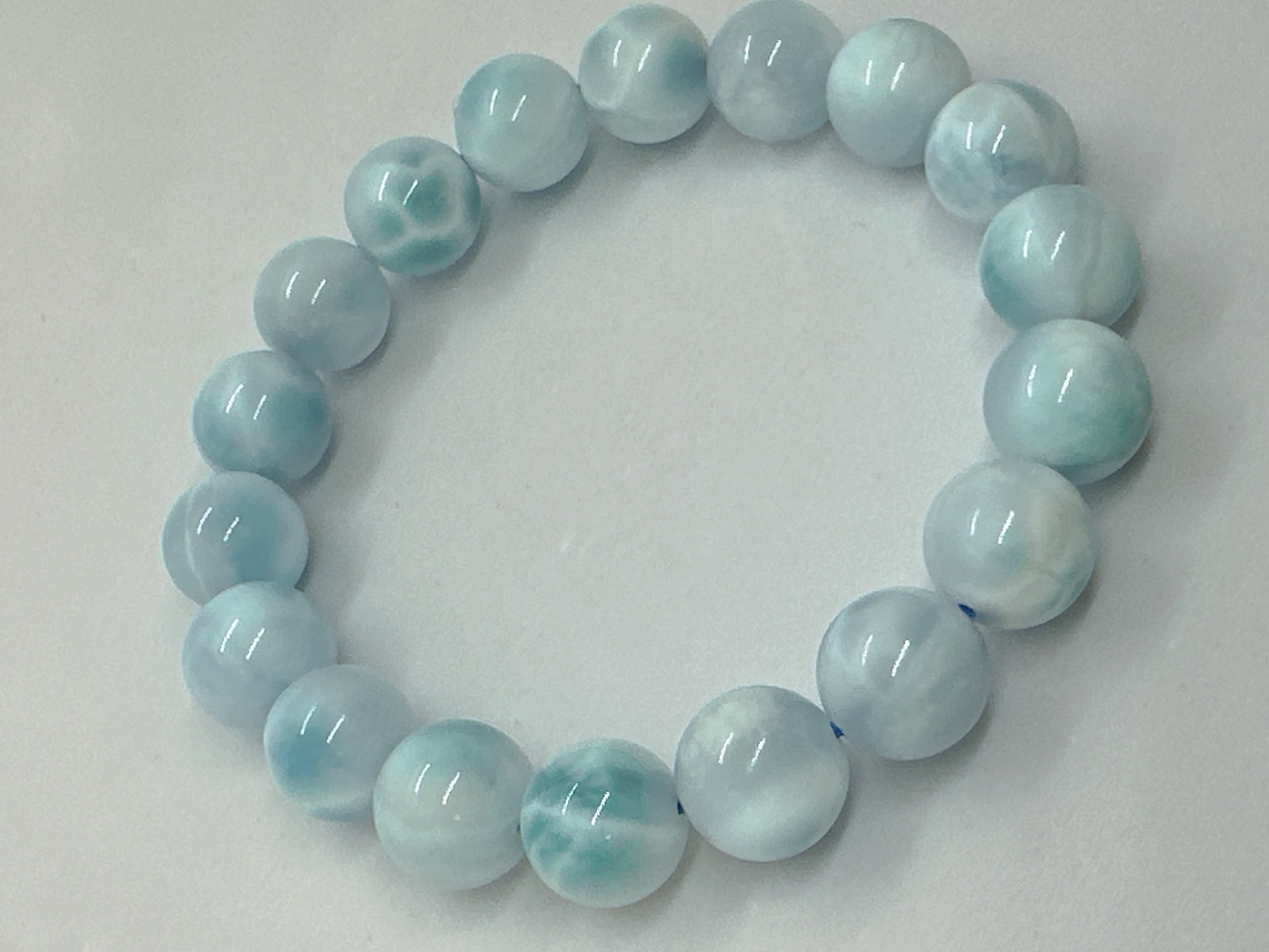 世界の3大ヒーリングストーンのひとつであるドミニカ産【ラリマー(ペクトライト)】の世界にふたつと無い模様が魅力であり、癒しの光放つブレスレットです。