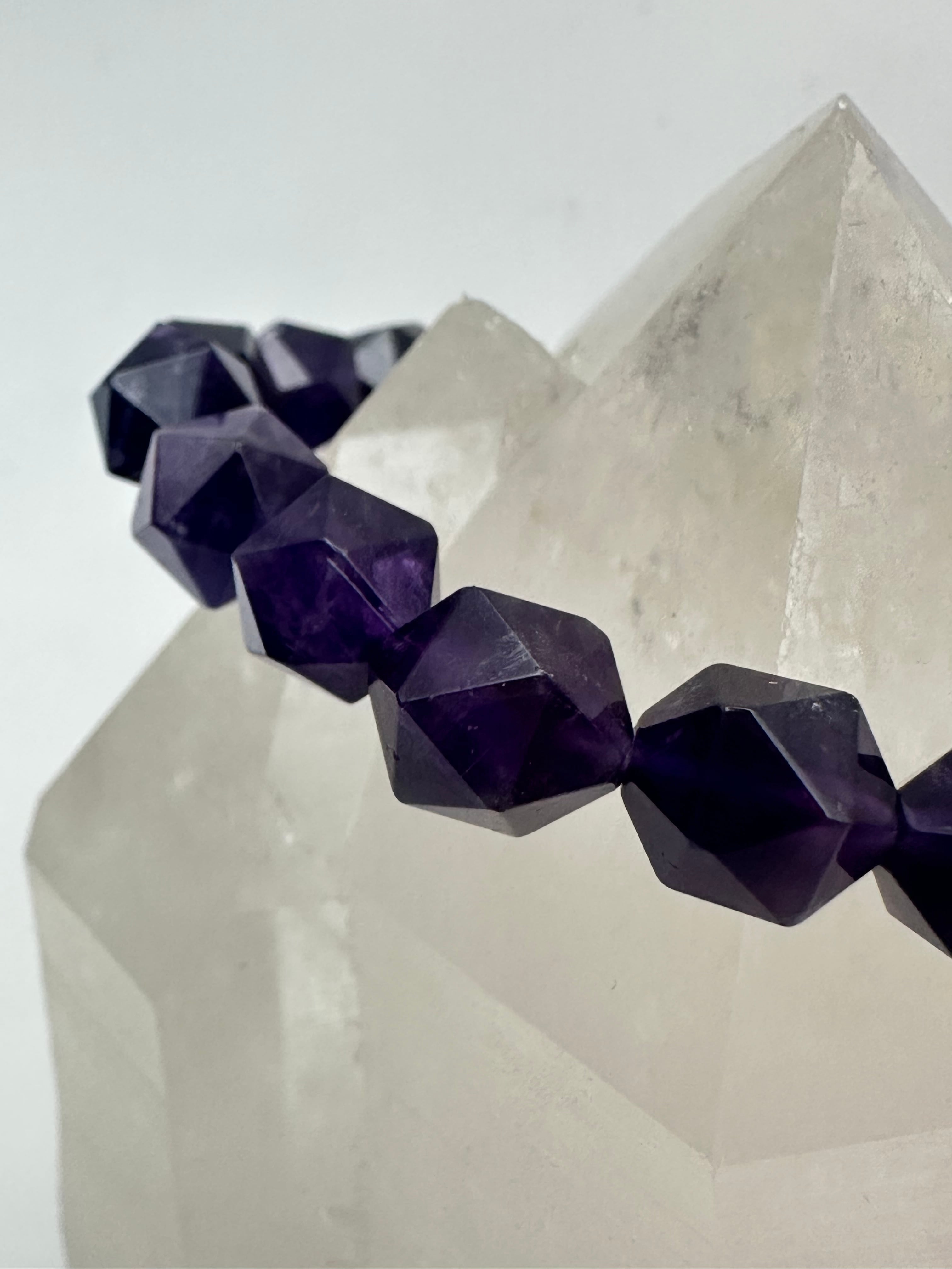 美しい紫色の輝き!2月誕生石スターカット【アメジスト・スターカット9mmブレスレット】WSAmSt9‐509022